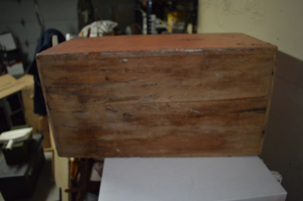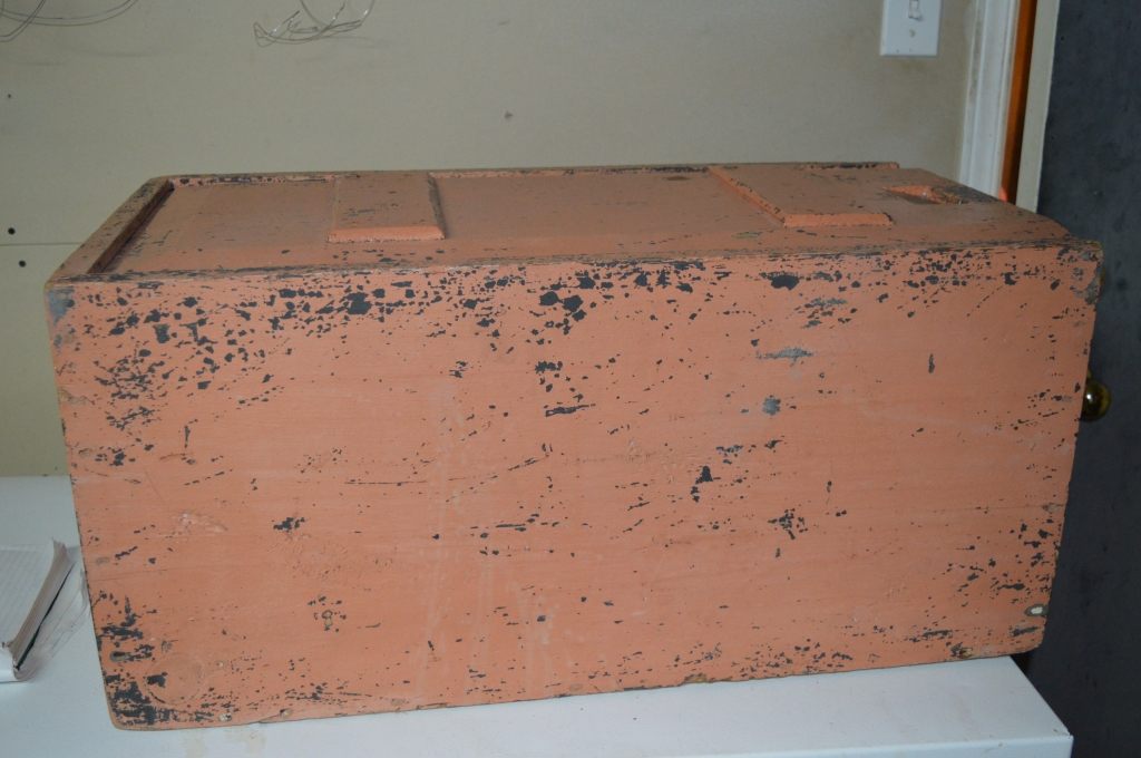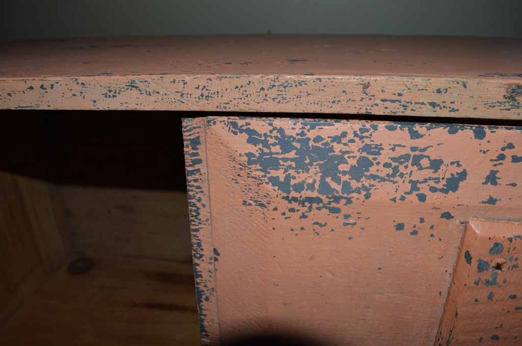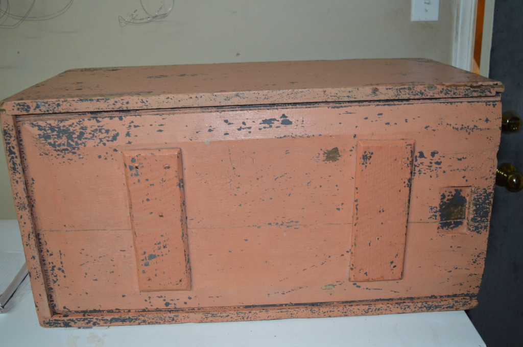 This candle box got an amasing history with me. I did purchase and sold it about 7 or 8 years ago, and i just had the chance to put my hands on it again. Salmon original color with a dark blueberry under, all original and forged nails mounted it even got its lock in the box, the only missing piece is the cover part of the lock that could easily be found in any old trunk . Circa 1800, this is really the best candle box not only by its quality but also its size, 29 inches long x 15 wide and 12.5 deep. Who will have the chance to own it this time ?