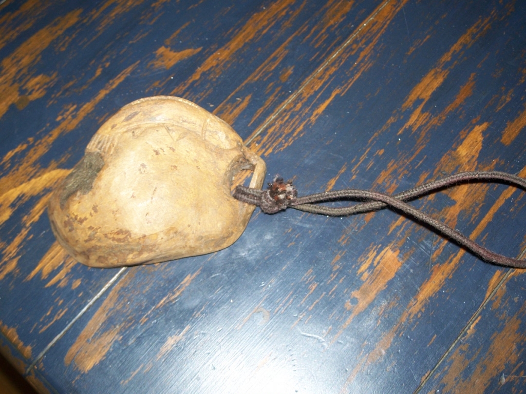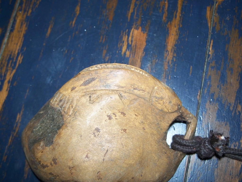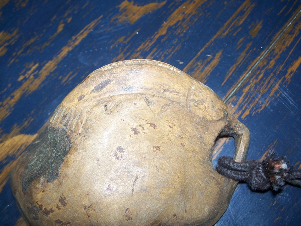 Nice canoe cup circa 1940's, carved with a naïve fish on top.4.5 inches X 3.25 and 2 this is a nice example of one done to be used and not for decoration.