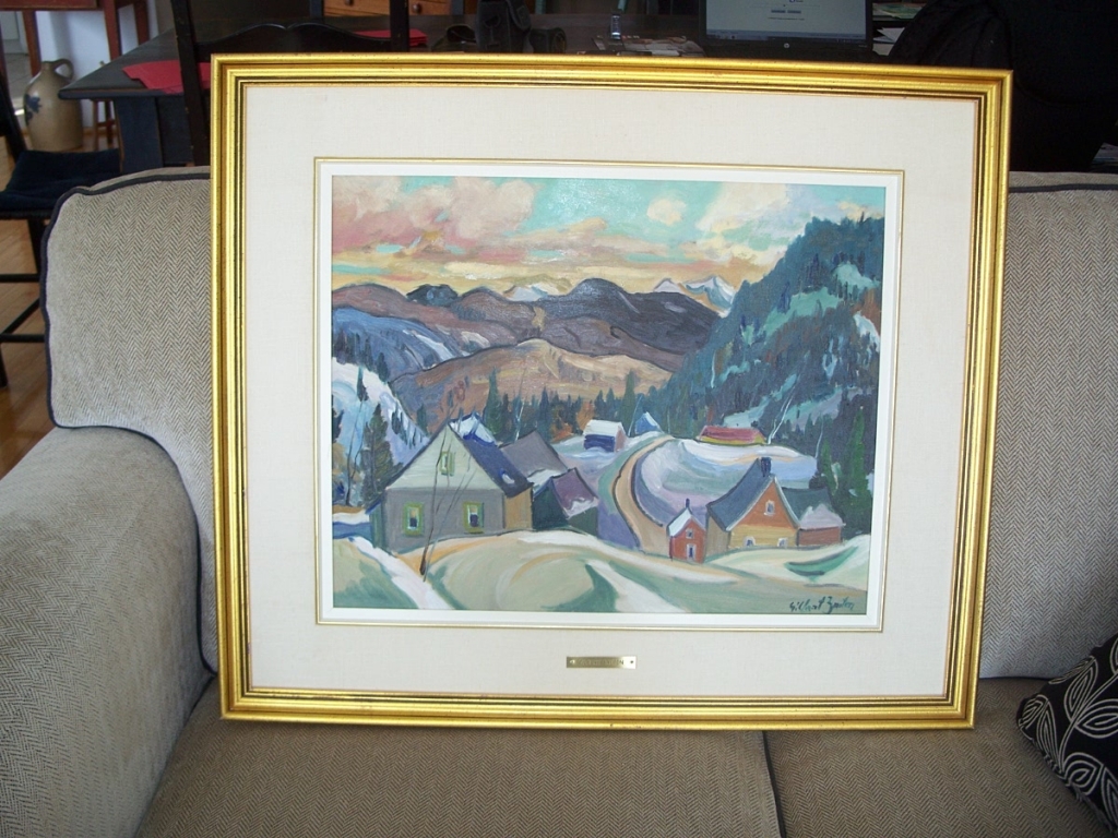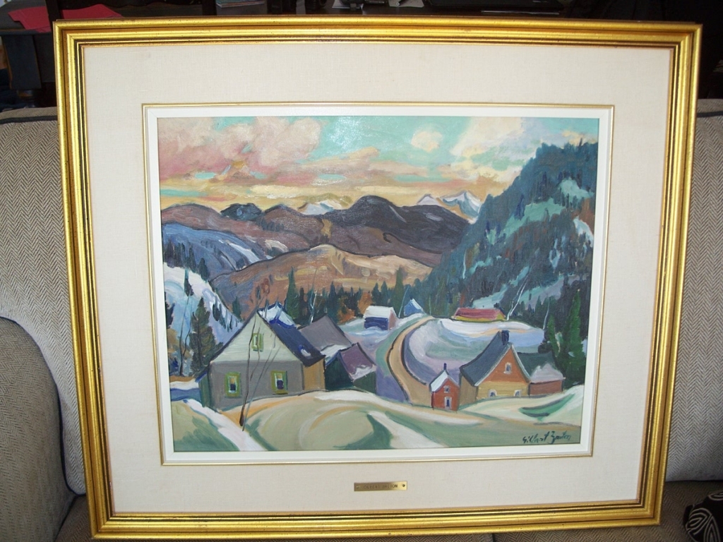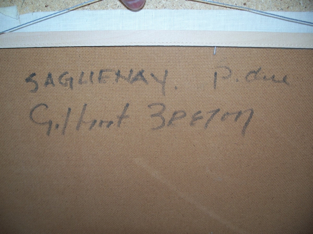 Beautifull large oil on canvas from Gilbert Breton, well quoted artist amasingly in the René Richard style. This painting titled Saguenay in the back, is well signed in the bottom right and also got the brass plate at the base of the frame. Fresh out of an estate. 23 X 28 overall and 16 X 20 for the painting itself.