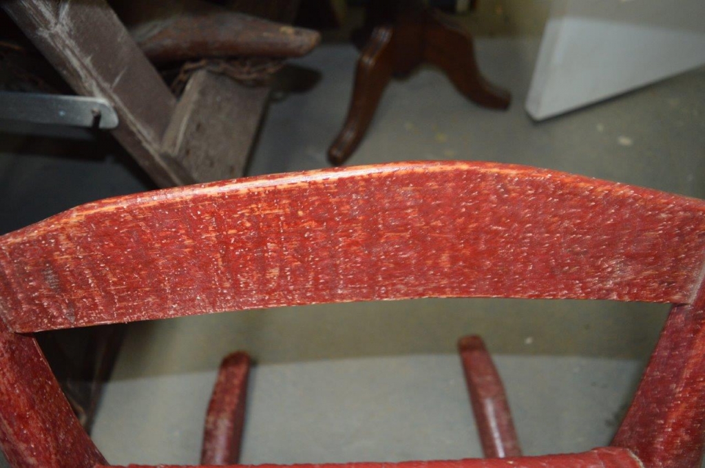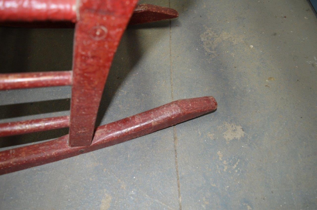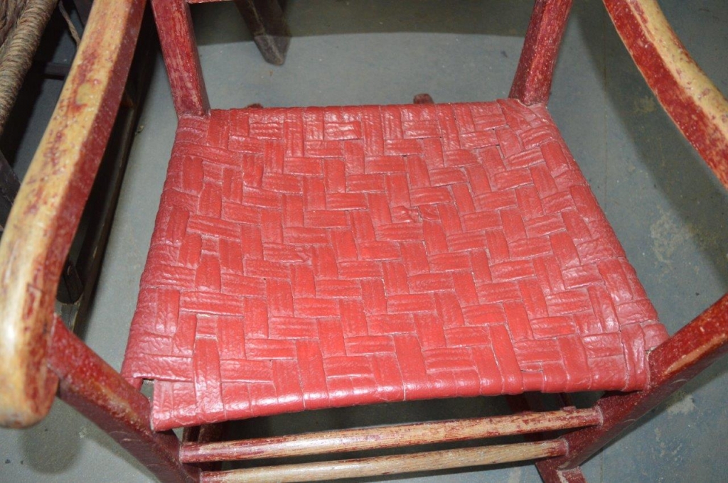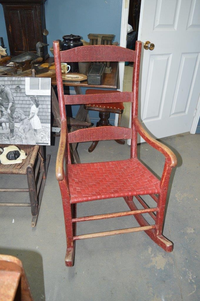 Really a beautifull large old rocking armchair, color is absolutely stunning and the size of this chair is great. 41 inches high X 23 wide, it is all original, very solid and the seat is breaded with wich , A real beauty ready for the house. Michel Sauve's estate