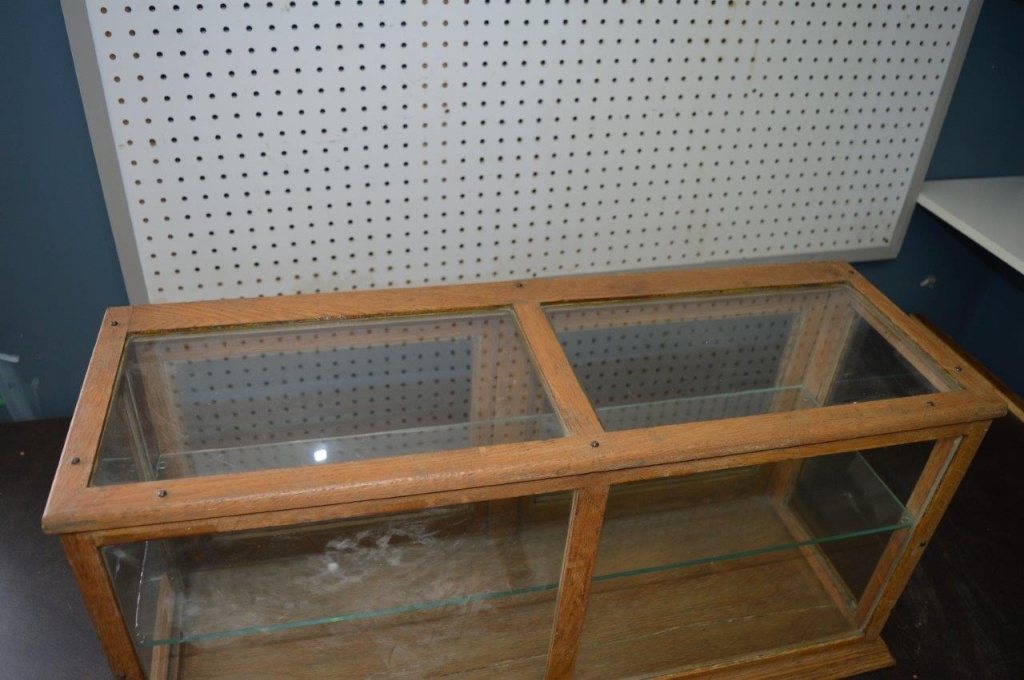 Nice small oak showcase, 30.5 X 14.5 high and 10 deep. 2 door and a glass shelve. Ideal to preserve expensive and rare items .From Michel Sauve's estate.