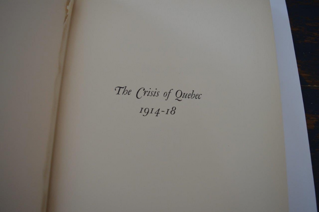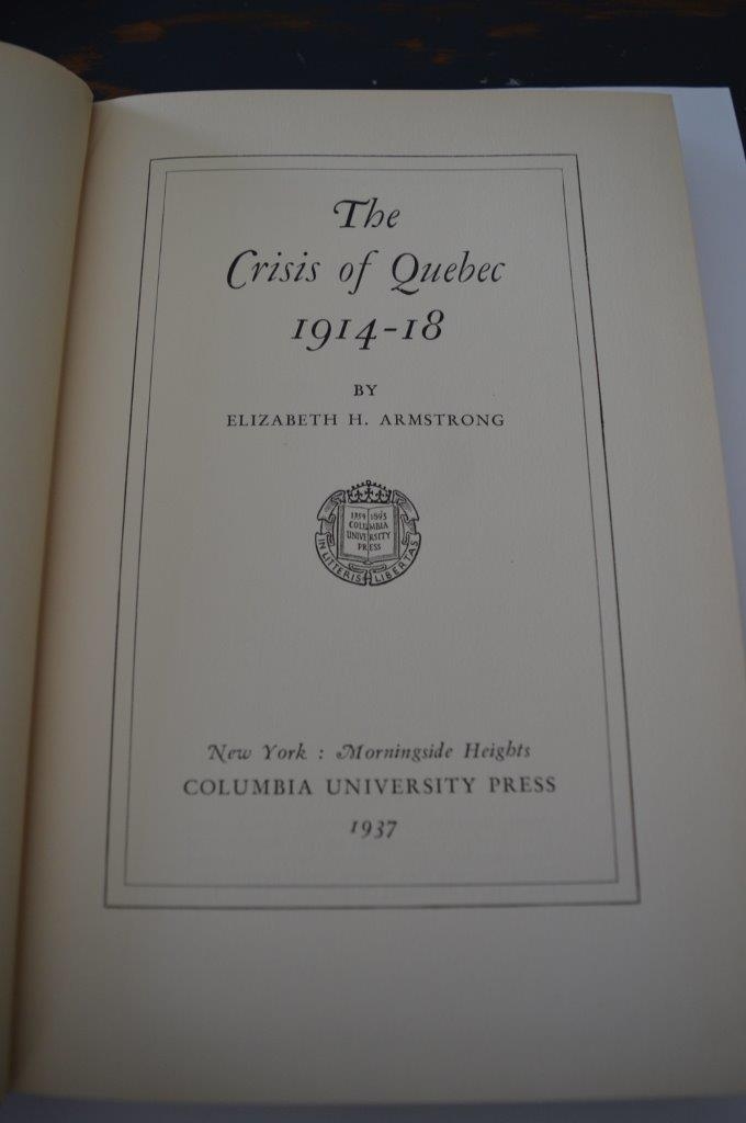 The Crisis of Quebec 1914-18. By Elisabeth H.Armstrong , Columbia University press 1937 . Like new, 270 pages.