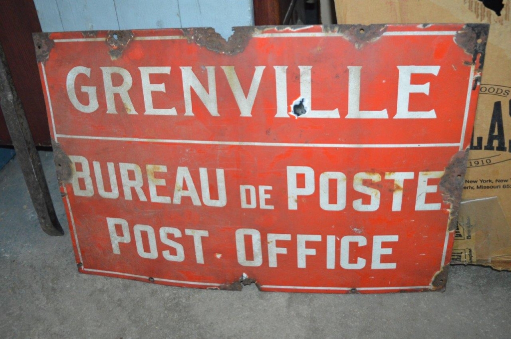 Très belle annonce du bureau de poste de Grenville, porcelaine quei montre bien son âge car il y à quelque défauts qui n'ajoutent qu'à son charme. 30 X 20 elle n'est pas des 2 côtée et provient de la collection de feu Michel Sauvé.