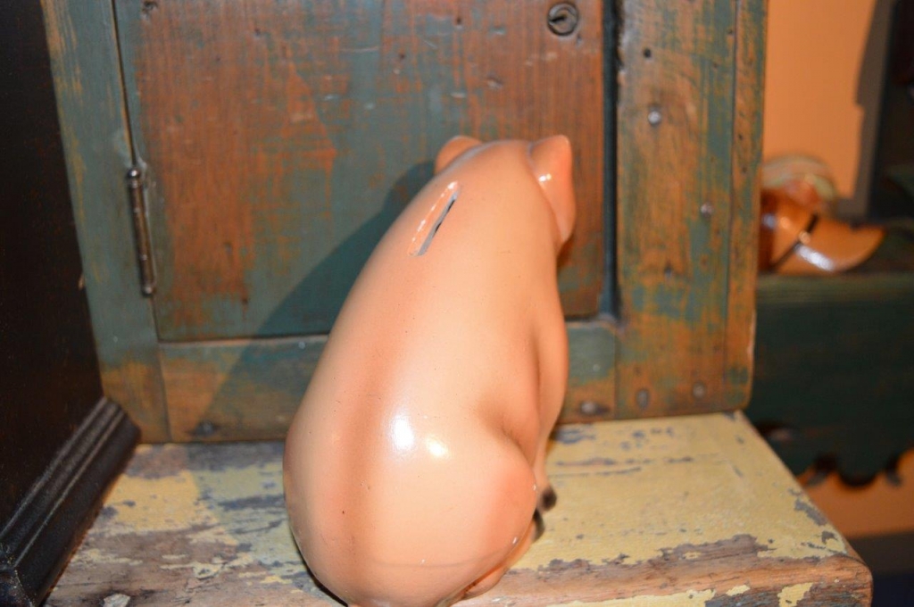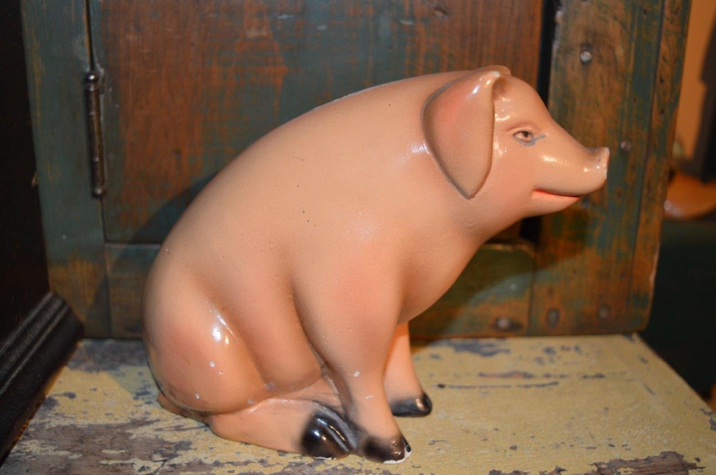 Belle banque antique en plâtre, ces banques devaient être cassées pour être ouvertes. Succession Michel Sauvé.