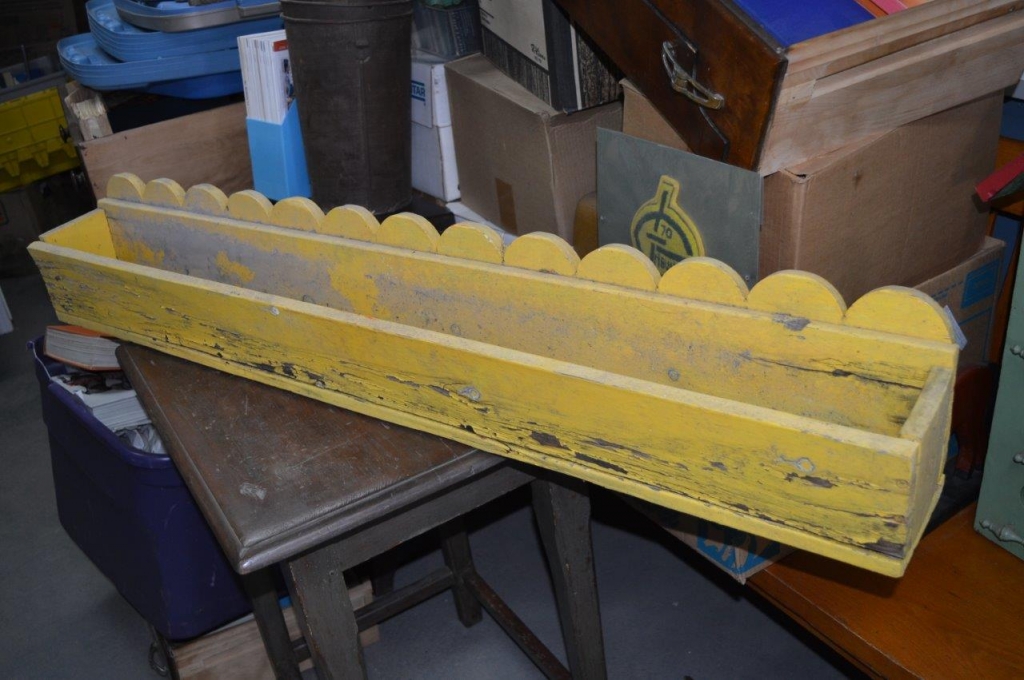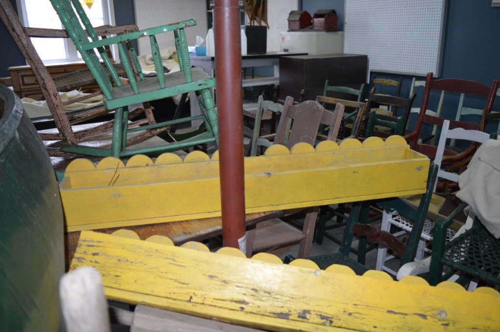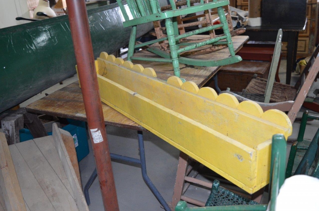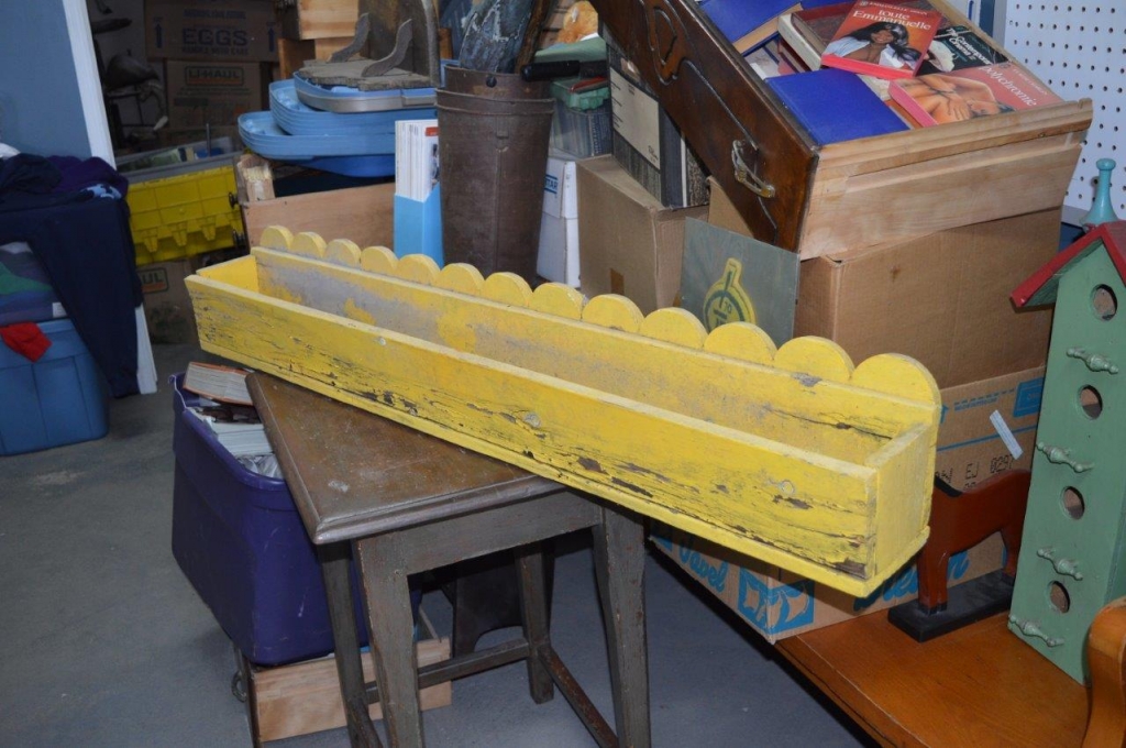 2 belle boîtes à fleurs. Peintes en jaune, 49 pouces de long X 7.7 de haut et profonds, belle pièces décoratives et pouvant être utilisées car en très bonne condition. Une des boîtes à une dent manquante au centre voir phoots. Succession Michel Sauvé, le prix est pour la paire.