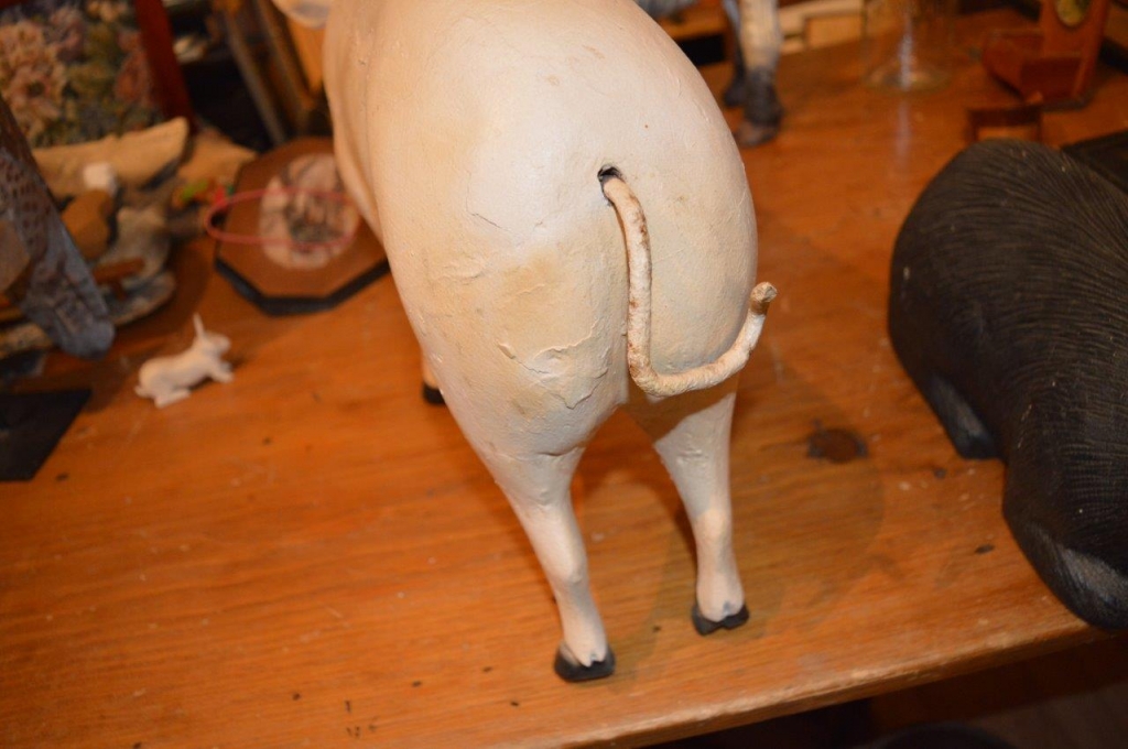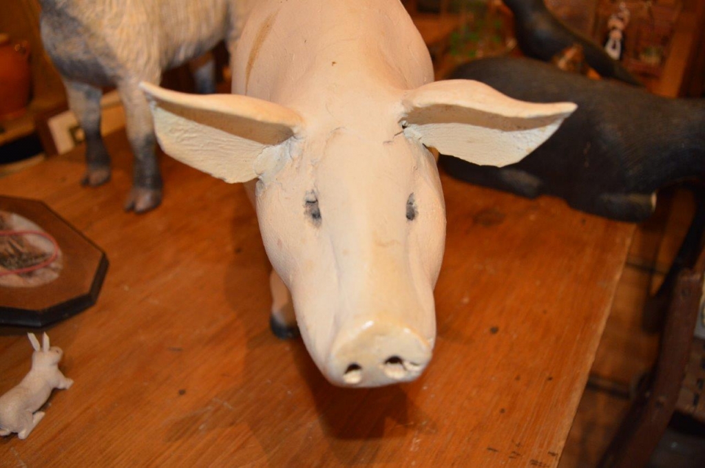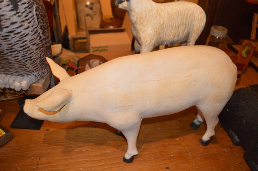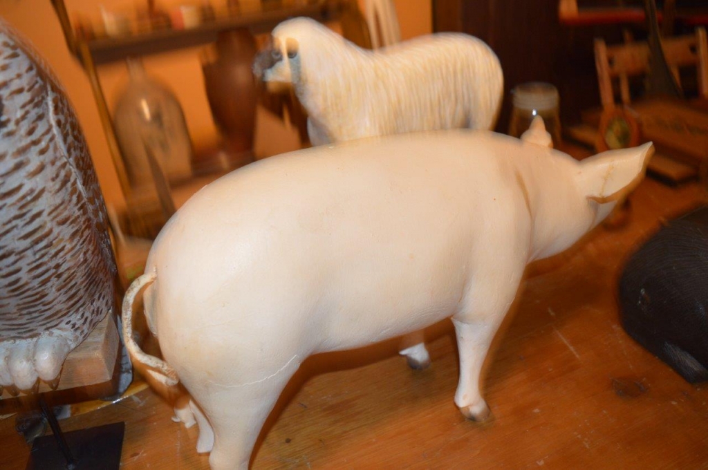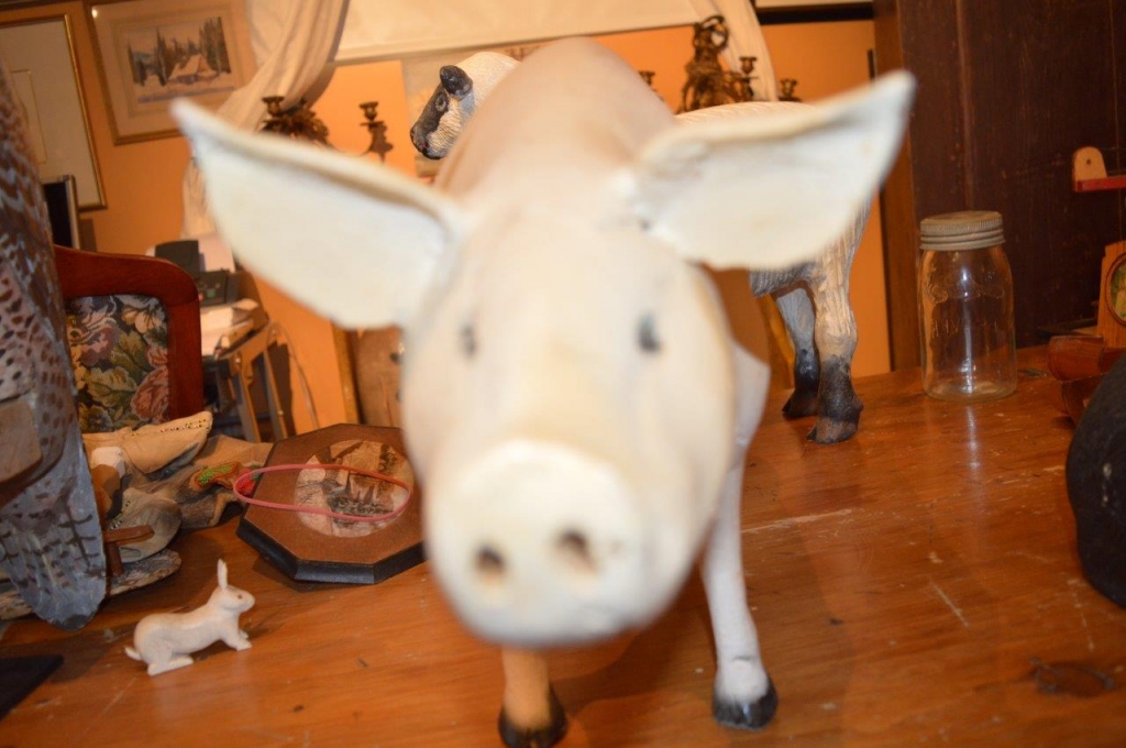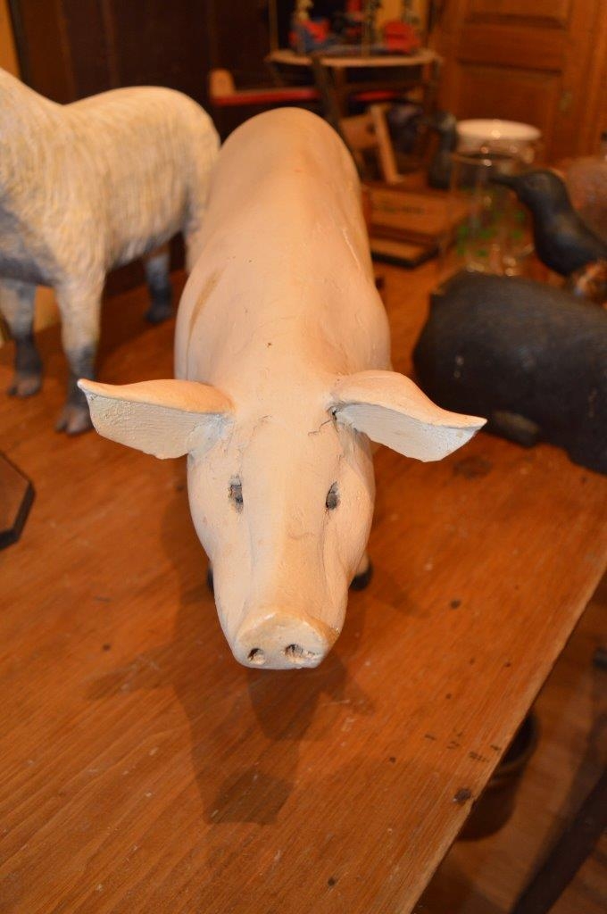 Belle grosse sculpture d'un cochon de 23 pouces de longueur, pièce non signée mais assurément de Desmeules . Beau travail qui à quand bien même de l'âge ce qui me ferait pencher pour Georges plus que Aimé. Provenant de la succession de feu Michel Sauvé.