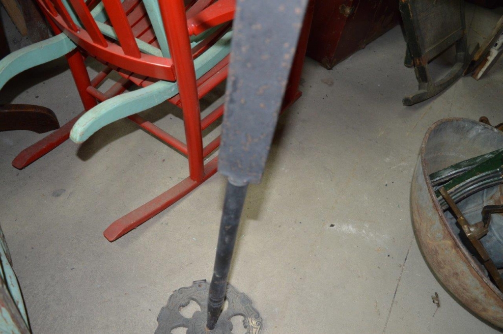 Belle croix forgée, pièce montée sur un pied de lampe. Elle mesure 49 pouces de hauteur hors tout par 21.5 dans son plus large. Belle pièce de forge ancienne probablement 19e provenant de la succession de feu Michel Sauvé.