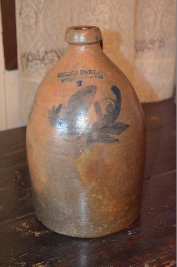 Rare cruche de grès de 1 gallon de Moïse Farrar. Pièce de qualité muséale provenant de la succession de feu Michel Sauvé