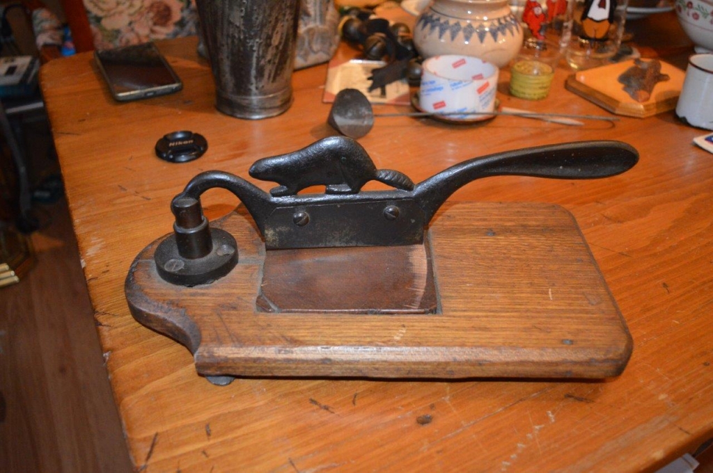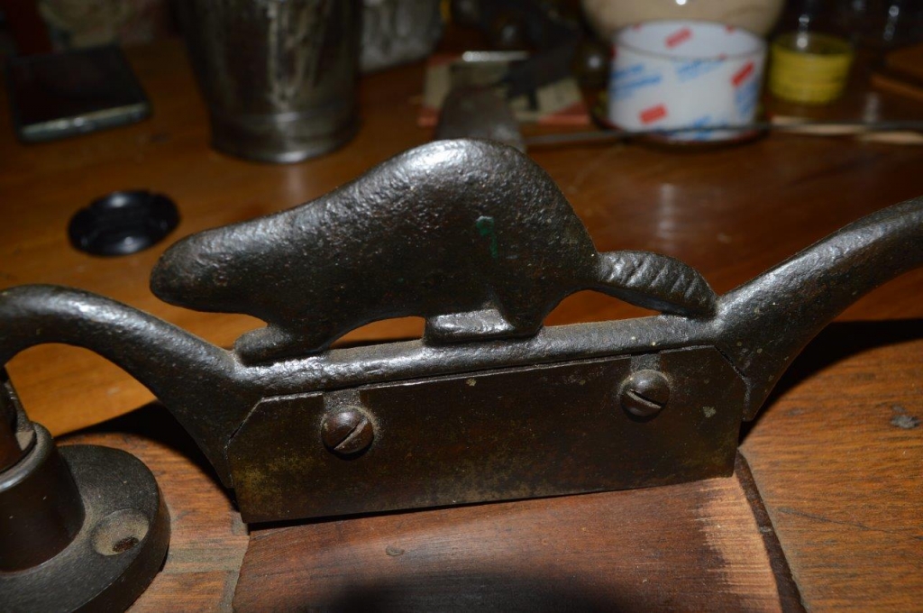 Vraiment superbe hache-tabac, la planche fait 14.5 pces et le couteau moulé avec le castor en 3 d 13 pouces également. Vraiment superbe il provient de la collection de feu Michel Sauvé.