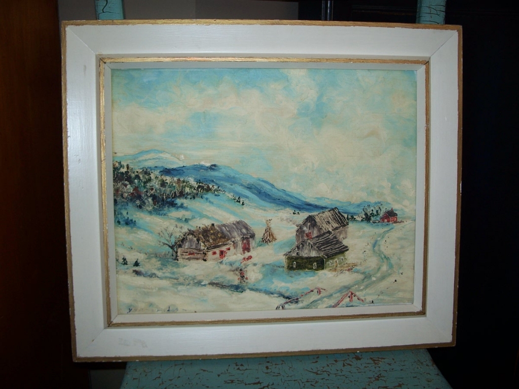 Magnifique paysage d'hiver signé Yvonne Bolduc en bas à gauche et dans le dos Yvonne Bolduc Baie St-Paul. 15 X 17 incluant le cadre original, celle huile est magnifique Pièce des année 50, vraiment dans les plus belle qu'il m'aie été donné de posséder.