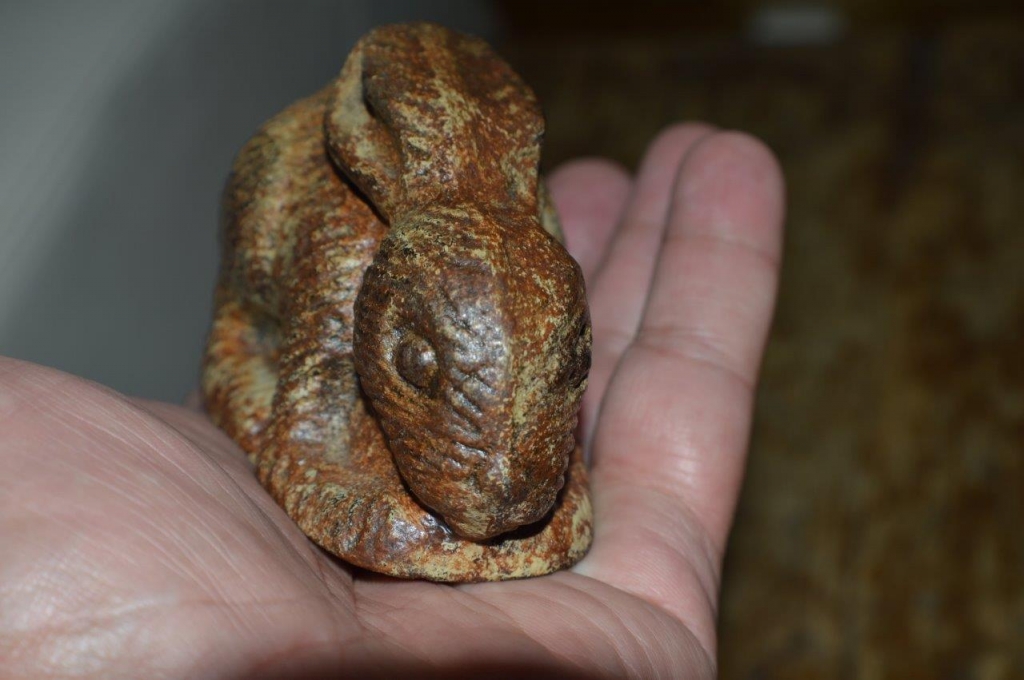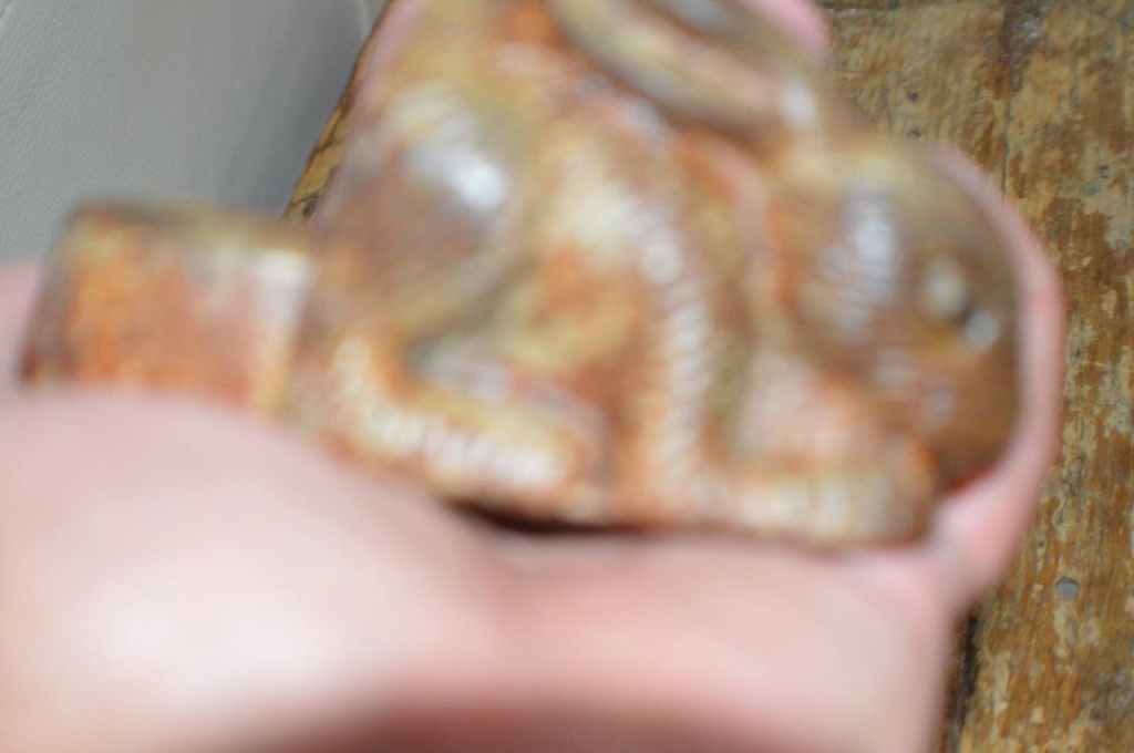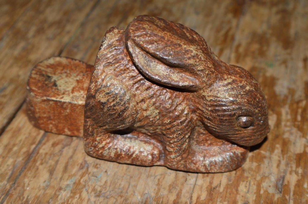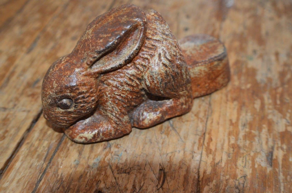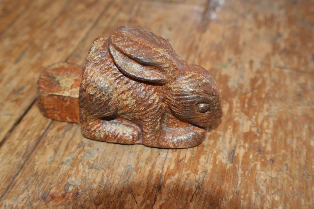 Belle petite pièce que l,on ne trouve pas souvent et ce surtout dans cette condition. Il sagit d'un lapin en fonte, pièce de la fin 19e qui servait à tenir entrouvertes les fenêtres à guillotines. 4.75 pces de long X 2.75 dans sa partie la plus haute ses couleurs d'origine sont fantastiques et je dois avouer que c'est la première fois que j'ai la chance d'acquérir un tel objet.