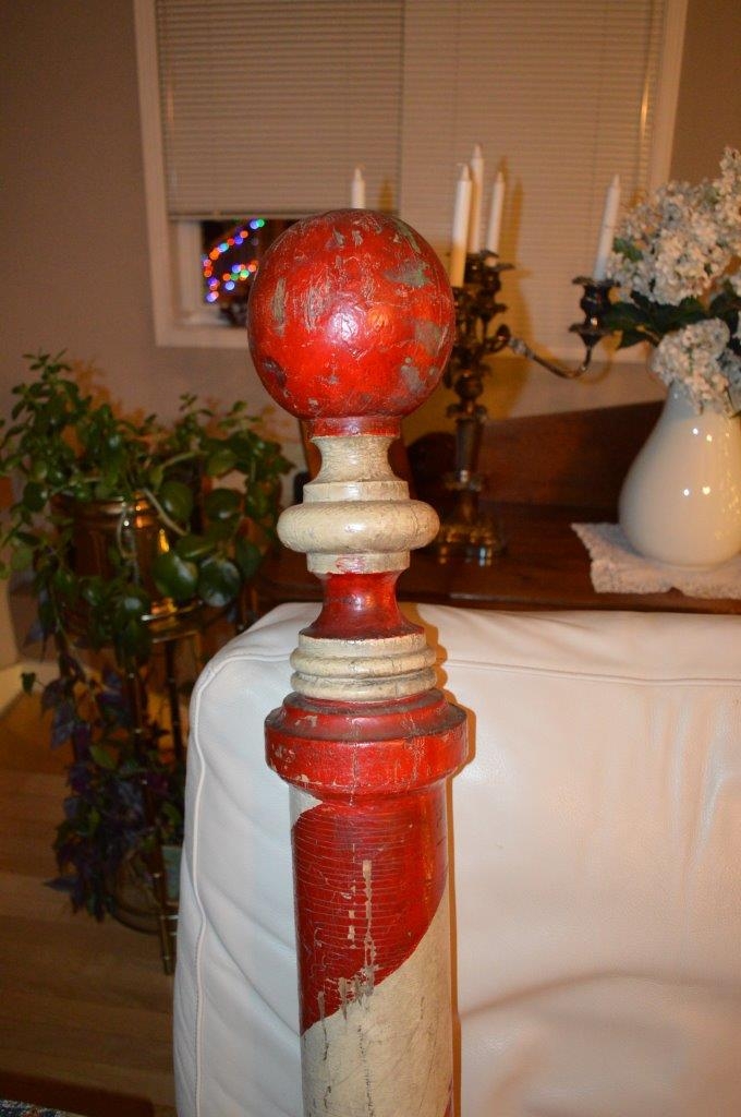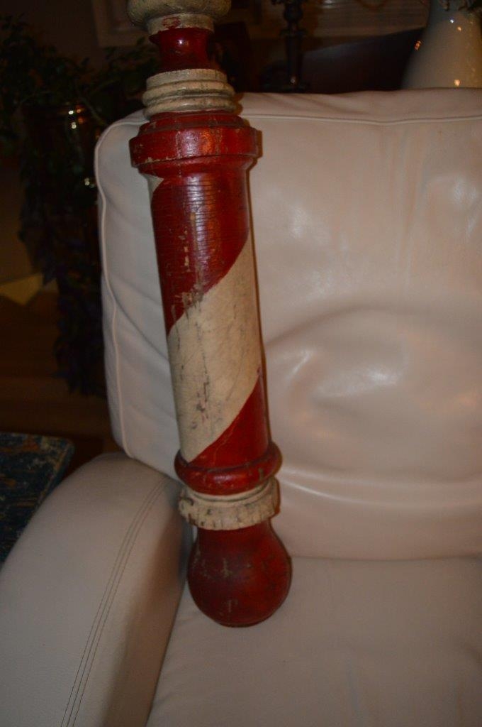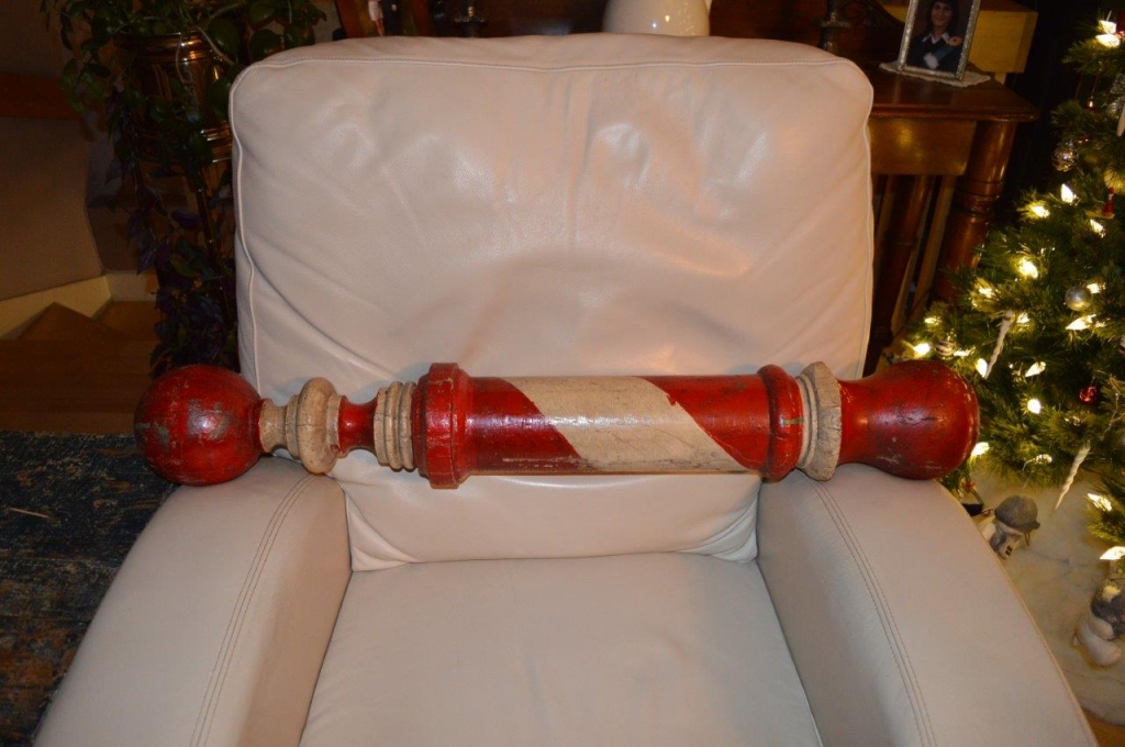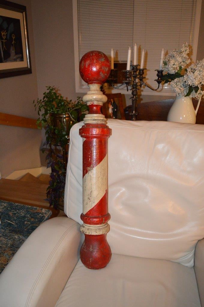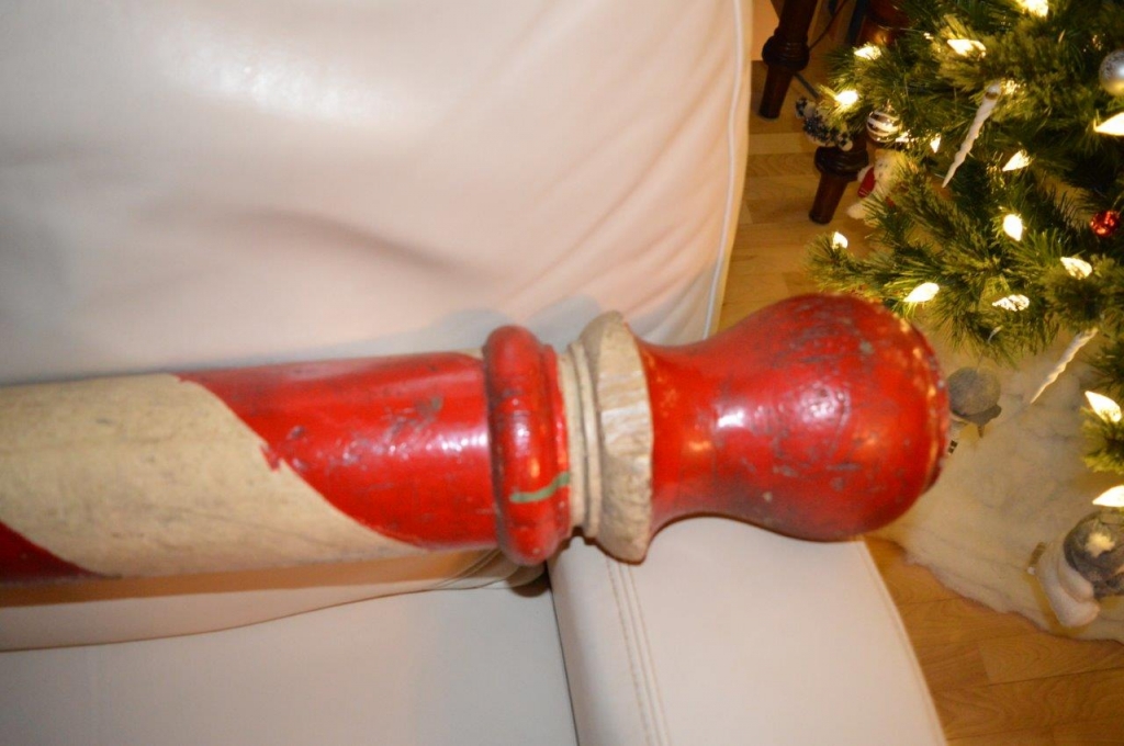 Belle pièce impossible à trouver sauf dans les collections. Superbe poteau de barbier circa 1880, magnifique condition mesurant 38 pouces de long. Provenance succession feu Michel Sauvé.