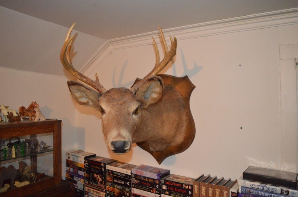 Tête de chevreuil naturalisée, condition moyenne mais belle. Succession Michel Sauvé